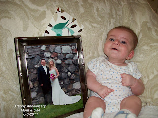 I think you are the cutest little boy on this planet, I'm biased because I'm your mom but family, friends & strangers agree that you are pretty darn adorable. You're trying so hard to laugh, you test it out and it comes out more like a raspy cough but you're getting there. You LOVE to smile at people and it usually results in them melting into a puddle of goo at the sight. And you've mastered rolling over to your side. I'm sure a complete roll is just around the corner.